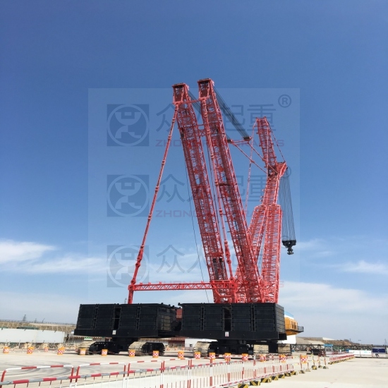 用于該核電穹頂吊裝的一臺履帶起重機,由三一重工自主研發設計制造,最大起重力矩達83000噸米,額定起重量達3600噸,是目前世界上第二大巨型履帶起重機。